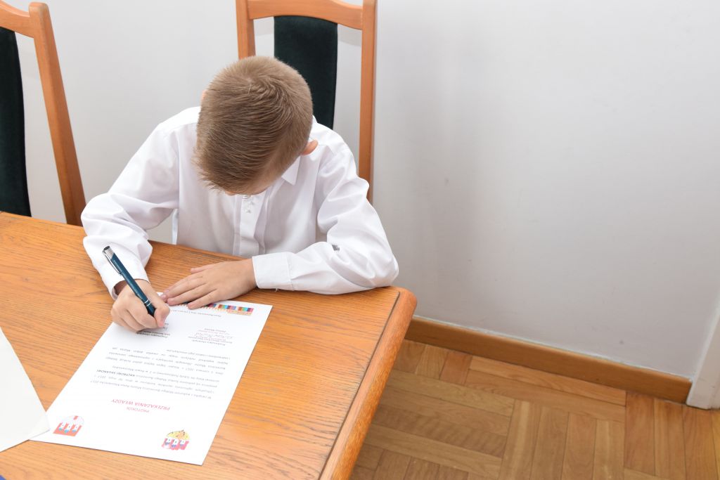 Na karcie do głosowania wpisujemy imię nazwisko i adres dziecka - osoby niepełnoletniej na dole karty w imieniu dziecka podpis składa rodzic lub opiekun prawny