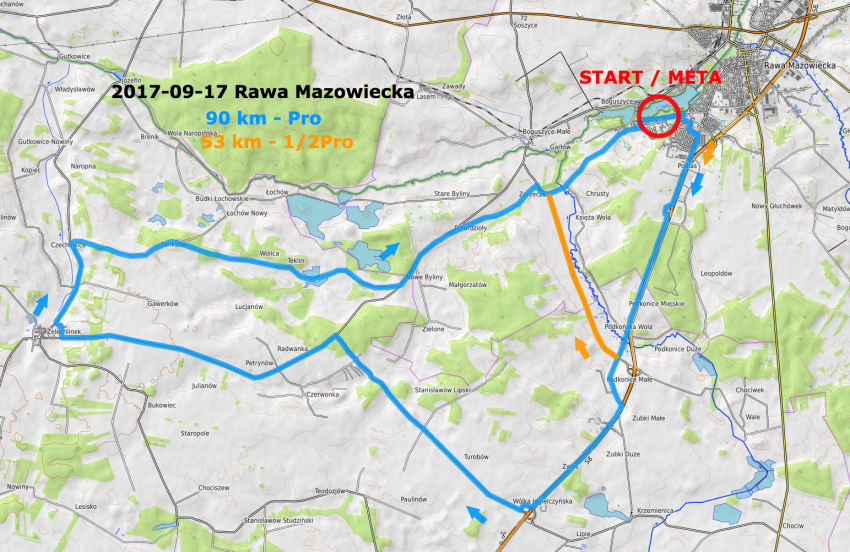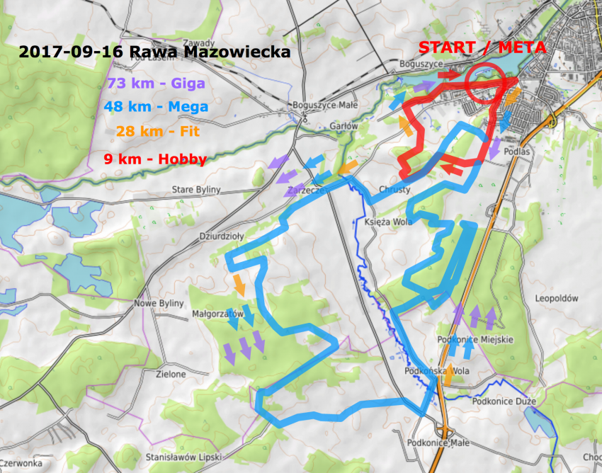 • Mapa trasy: Rawa Biega - Rawski Festiwal Biegowy.