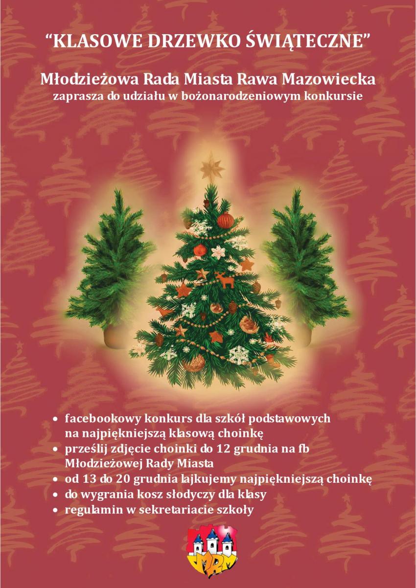 Młodzieżowa Rada Miasta ogłosiła facebookowy konkurs bożonarodzeniowy „Klasowe drzewko świąteczne". Konkurs jest skierowany do uczniów szkół podstawowych z terenu Rawy Mazowieckiej.
