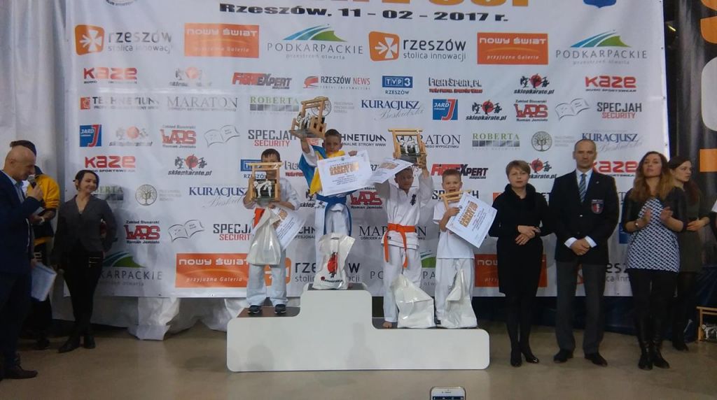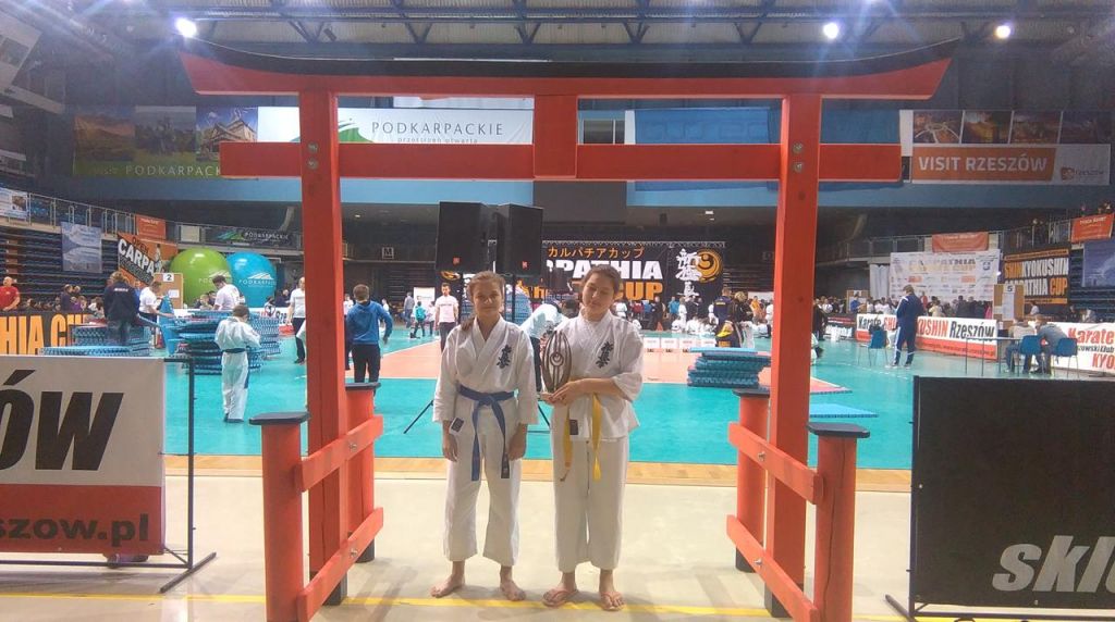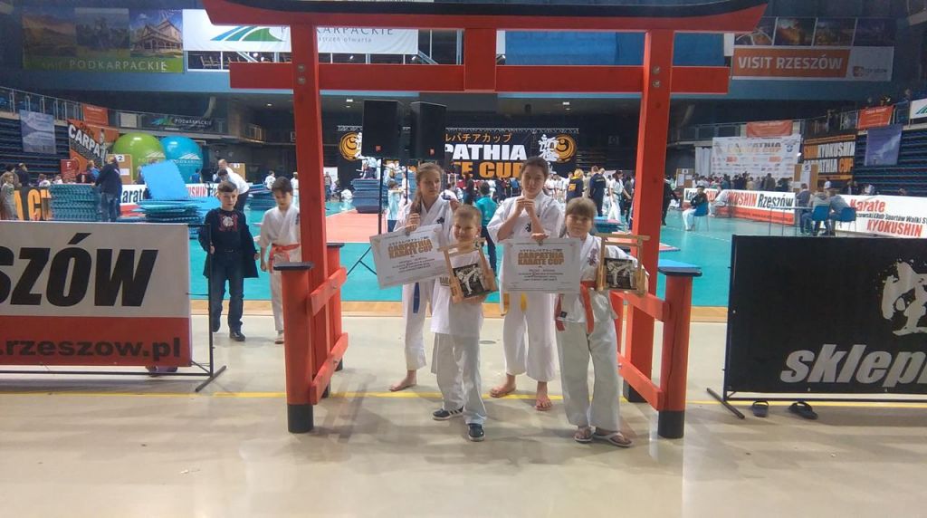 Znakomitym wynikiem zakończyły się dla naszych karateków Międzynarodowe Zawody Karate Kyokushin w Rzeszowie. Antonina Pacho i Mateusz Gasiński zostali brązowymi medalistami, zaś starsze zawodniczki Katarzyna Pacho i Martyna Gasińska zajęły piąte miejsca w swoich kategoriach wiekowych i wagowych.