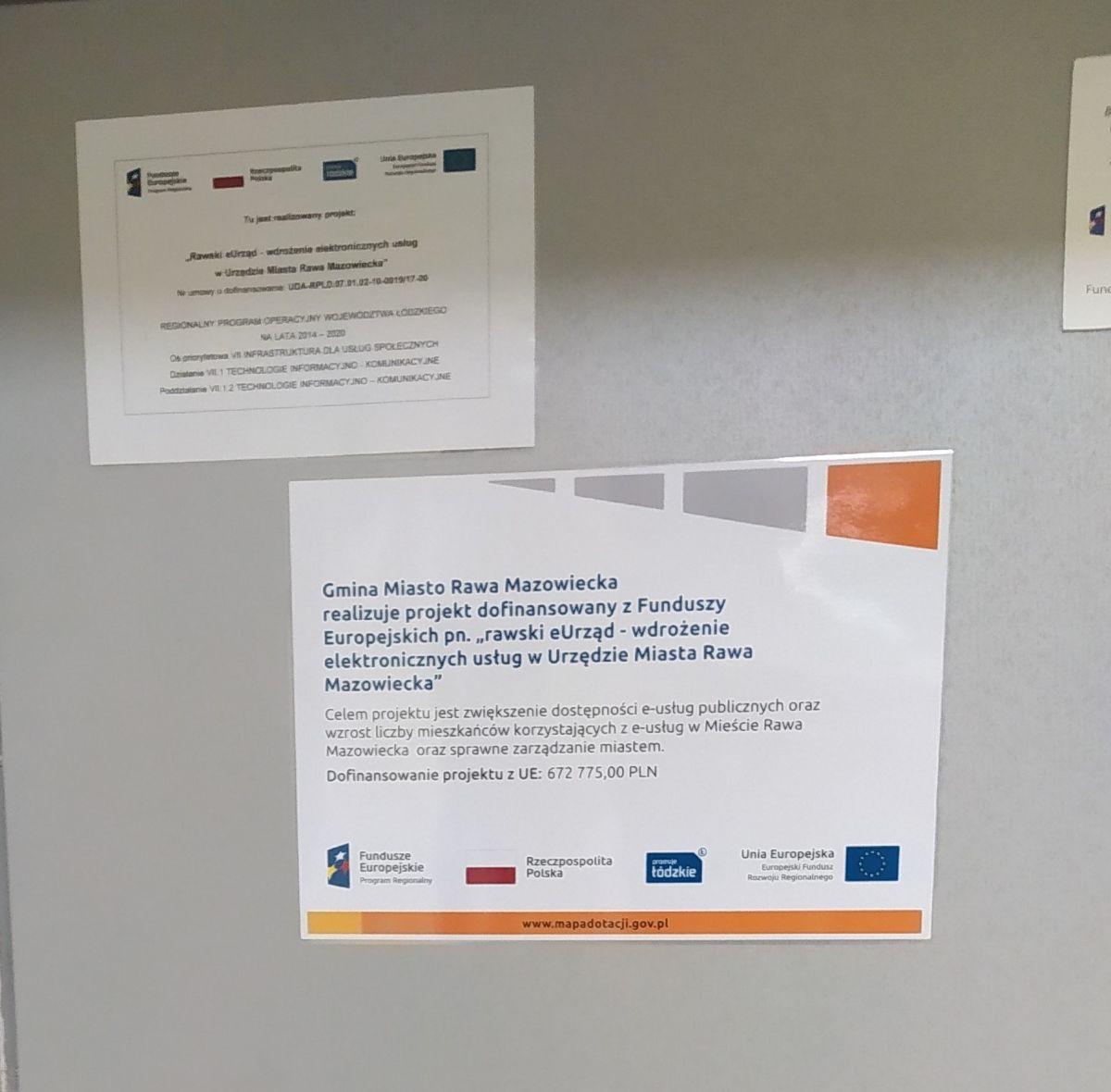 • Tabliczka informacyjna o projekcie Rawski eUrząd na drzwiach serwerowni