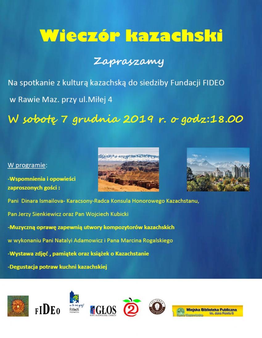 Wieczór rozpocznie się o godz. 18. Zachęcamy do bliższego poznania Kazachstanu.