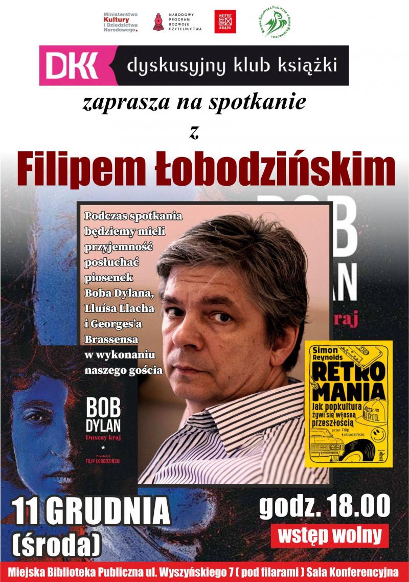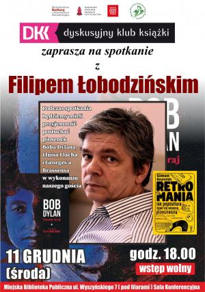 Tłumacz, dziennikarz, autor tekstów, muzyk, aktor będzie gościem rawskiego Dyskusyjnego Klubu Książki. Filip Łobodziński, bo o nim mowa, odwiedzi Rawę w środę 11 grudnia. Na godzinę 18.00 zapraszamy do Miejskiej Biblioteki Publicznej. Zapowiada się wspaniały wieczór przy utworach Boba Dylana, George'a Brassensa, LLuisa Llacha.