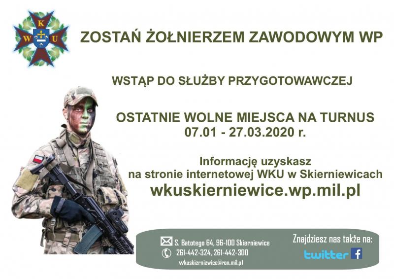 Więcej informacji znajduje się na stronie wkuskierniewice.wp.mil.pl lub pod nr tel. 261-442-324.