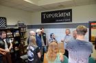 Trzecia wizyta to nasze spotkanie literacko – muzyczne, wypełnione pasjonującymi opowieściami o Dylanie oraz o pracy tłumacza. Gwoździem wieczoru był niewątpliwie dwukrotny występ pana Filipa. Przy akompaniamencie gitary, ten znakomity dziennikarz, tłumacz i aktor, zaśpiewał piosenki swoich ulubionych twórców. Na spotkaniu można było też zakupić płyty oraz książki, które powstały przy udziale lub współudziale naszego gościa.