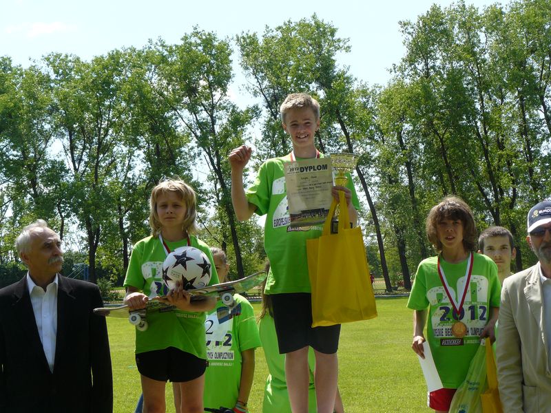 Mateusz Wawrzyniak i Kacper Gos zostali złotymi medalistami XX Europejskich Biegów Młodych Olimpijczyków. 19 maja 2012 r. w Bielicach k/Sochaczewa podczas jednej z największych masowych imprez biegowych rozgrywanych w naszym kraju Europejskich Biegach Młodych Olimpijczyków (ponad 3000 tysiące uczestników w  10 kategoriach wiekowych) dwóch młodych uczniów Szkoły Podstawowej nr 1 Mateusz Wawrzyniak i Kacper Gos zdobyło złote medale. Mateusz na dystansie 700 m klas II a Kacper klas IV. Poza medalami otrzymali również wartościowe nagrody w postaci rowerów. Europejskie biegi Młodych Olimpijczyków to impreza z 20-letnią tradycją w której uczniowie SP1  regularnie zajmują tam medalowe pozycje. W poprzednich latach triumfatorem był między innymi czołowy obecnie 400-metrowiec w kraju, wychowanek MLUKS RAWA Kamil Budziejewski. W klasyfikacji szkół  na 62 placówki Szkoła Podstawowa nr 1 zajęła III lokatę a do zwycięskiej ekipy zabrakło zaledwie 7 punktów. Zarówno Kacper jak i Mateusz do tego występu przygotowywali się od blisko roku trenując w klubie MLUKS RAWA pod opieką trenera Jarosława Wasiaka.