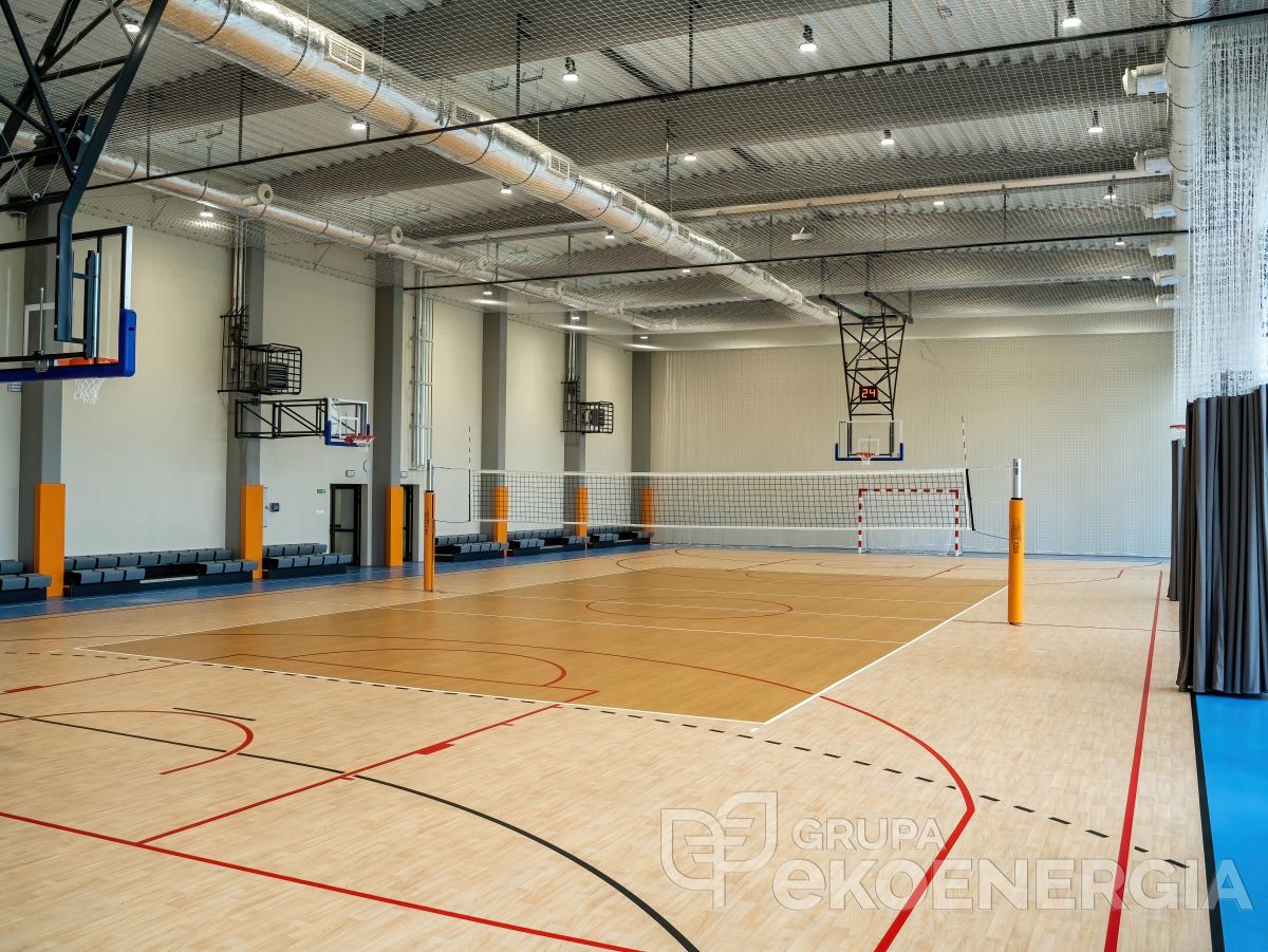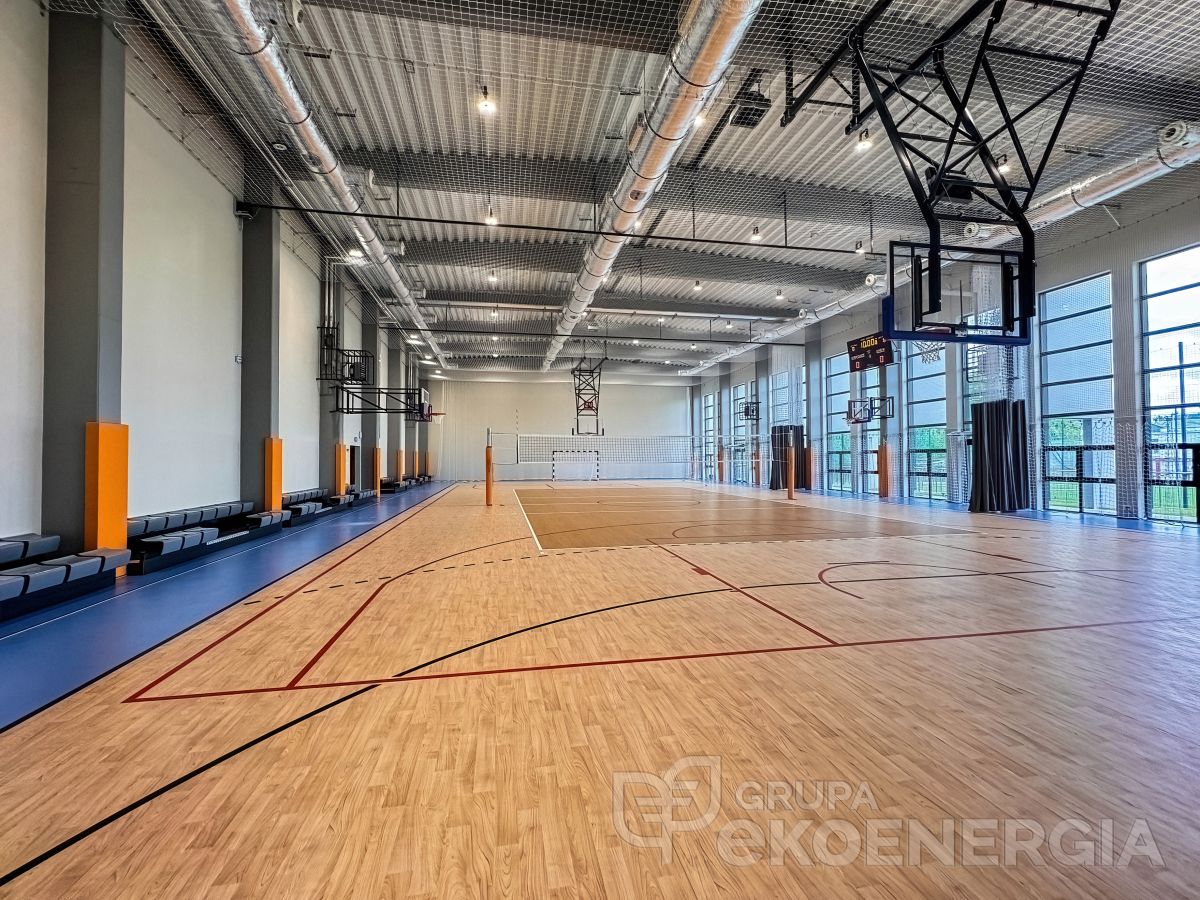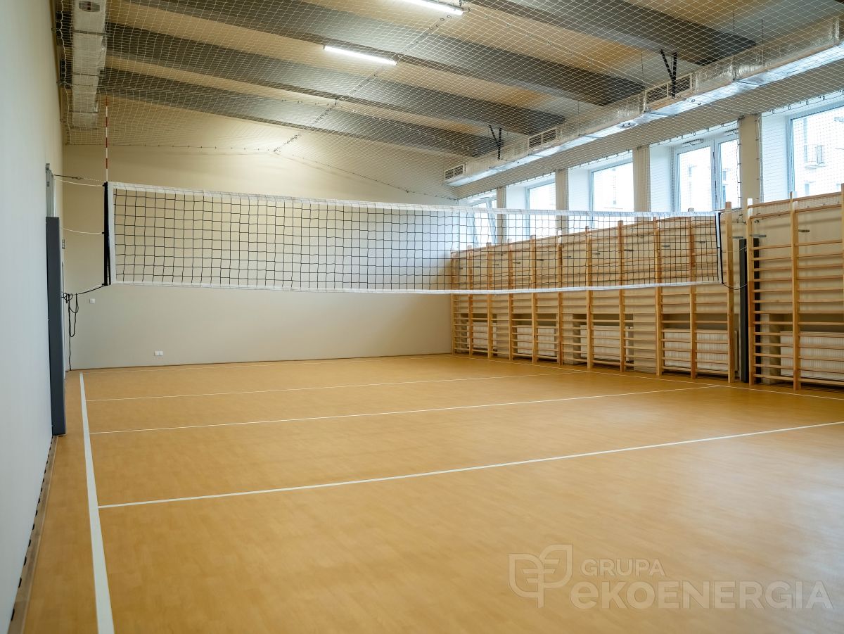 Zadanie realizowane jest w cyklu dwuletnim. W roku 2023 wykonano niezbędne prace wyburzeniowe, wykonano przyłącza wod-kan i energetyczne, przebudowano istniejącą salę gimnastyczną, wykonano nową salę gimnastyczną (stan surowy zamknięty). Wykonano część prac instalacyjnych elektrycznych, wentylacyjnych i wodno – kanalizacyjnych i brukarskich. Wykonano także system kanalizacji deszczowej odwadniającej cały budynek szkoły i sale gimnastyczne. Przy tej okazji wykonano izolację przeciwwilgociową i termiczną fundamentów budynku szkoły.